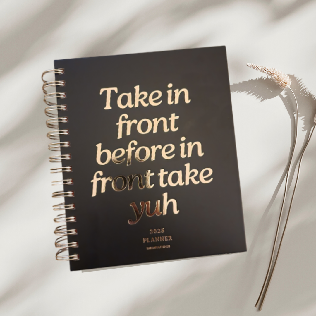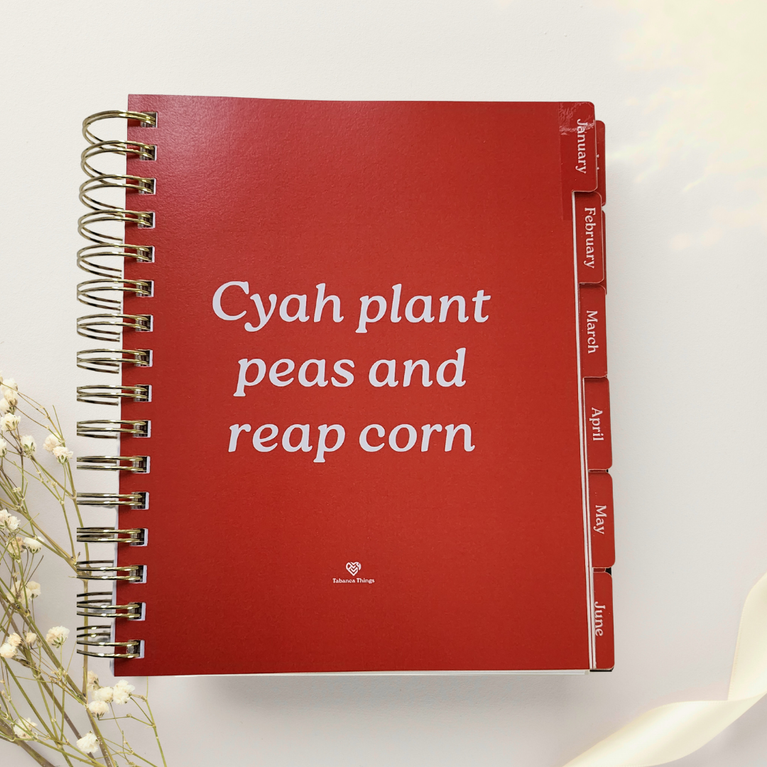 12 Monthly Tabs that are authentically Trinbagonian expressions! Just like yuh granny used to tell yuh! Designed to motivate and move you to make 2025 the year you get things done.